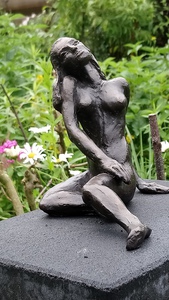 Bronzen zittend vrouwelijk naakt