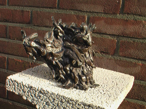 Opmerking: Dit bosgeestje is een uniek exemplaar, uit een serie unica's van 3 exemplaren. Alle 3 zijn verschillend gemaakt. Eentje ervan is verkocht. Zij zijn geinspireerd door de gezichten die ik zie in bomen. Op de bijgaande foto staat 1 ex van de 2 die te koop zijn. Voor de andere kijk even verder op mijn site bij exto of mijn eigen site www.barbsgallery.com