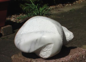 Notice: In this sculpture I examined the hollow and the convex, creating a play of light and shadow. It becomes a completely unique landscape of shapes. I have worked on this image in several episodes. The sculpture is made of a marble river stone from the river bed of the Serra on the mountain Monte Altissimo near Azzano, where in the past Michelangelo took the marble from the same mountain. This marble is statuario marble, this is a finer marble like ordinario marble. It is an abstract timeless sculpture.