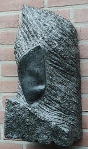 Opmerkingen: Graniet is een dieptegesteente. Er is een deel met lijnen, uitlopend in een punt ontstaan. Een deel is gepolijst en een deel heb ik onbewerkt gelaten, om het ruwe materiaal te laten zien. De boorgaten onderaan vond ik mooi om erin te laten voor de expressie van het beeld, als een soort poortjes.