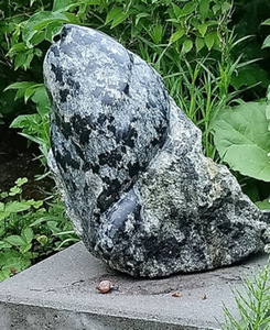 Notice: This sculpture is made intuitively according to the shape of the stone - organic. The sculpture was already there and I took it out. I see a rhinoceros in the shapes. On one side the stone is lighter in color, on the other side darker. The stone contains brown-red iron ore layers.